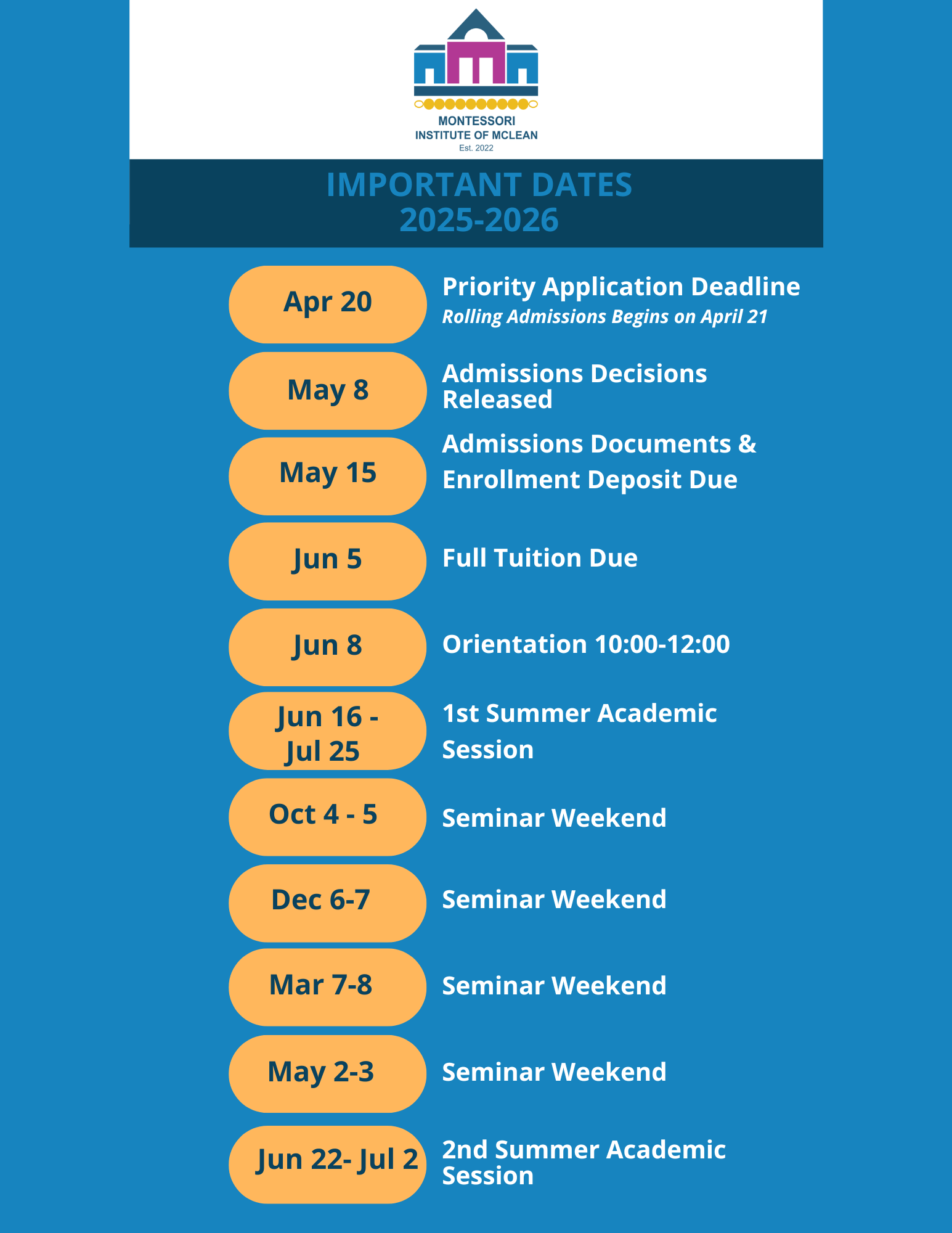 * Montessori Institute of McLean is accredited by the Montessori Accreditation Council for Teacher Education (MACTE) and is affiliated with the American Montessori Society (AMS), and is certified to operate a Montessori early childhood teacher education program by the State Council of Higher Education for Virginia (SCHEV).